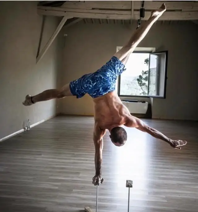 5. Handstands on canes. Canes are those stick-looking apparatus with two poles, and two wooden handles that hand balancers use to perform and often do one-arm feats upon.